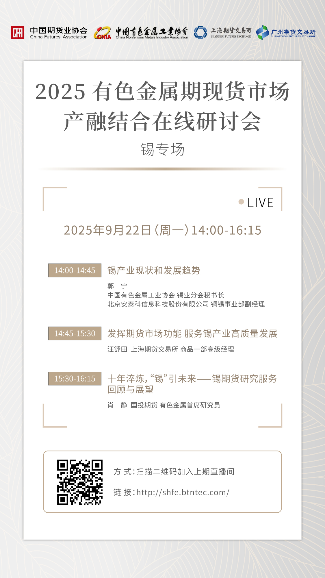 关于举办“2025有色金属期现货市场产融结合在线研讨会--锡专场”的通知