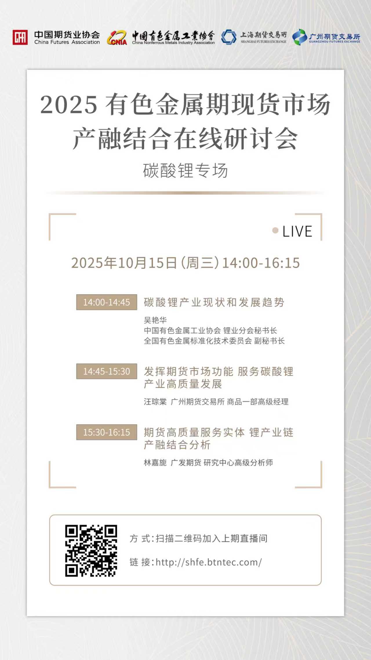 关于举办“2025有色金属期现货市场产融结合在线研讨会-碳酸锂专场”的通知