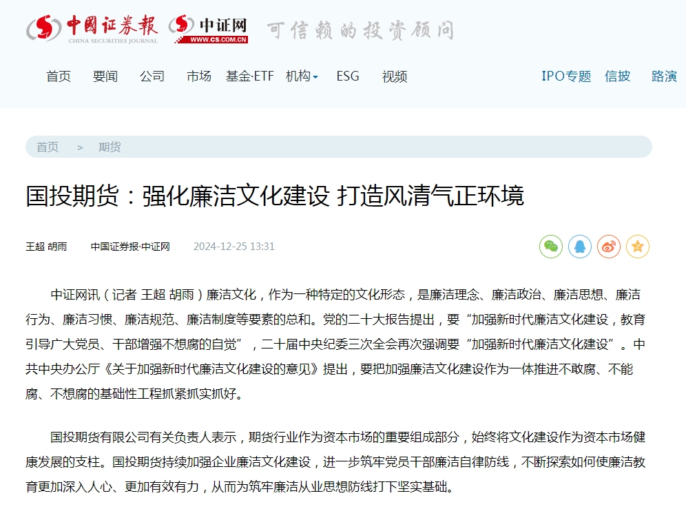 按照习近平总书记关于“打造一个规范、透明、开放、有活力、有韧性的资本市场”和 “提升重要大宗商品的价格影响力,更好服务和引领实体经济发展”的重要指示,构建“合规、诚信、专业、稳健、担当”的期货行业文化,为打造规范、透明、开放、有活力、有韧性的资本市场贡献“期货力量”。