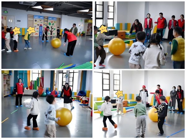 随后,志愿者们来到了体感训练教室,在康复中心专业老师的陪同下,与孩子们进行了互动。志愿者们主动与孩子们交流、玩耍,积极引导和鼓励孩子们参与“躲闪跑”“小马过河”等游戏,整间教室瞬间充满了欢声笑语。