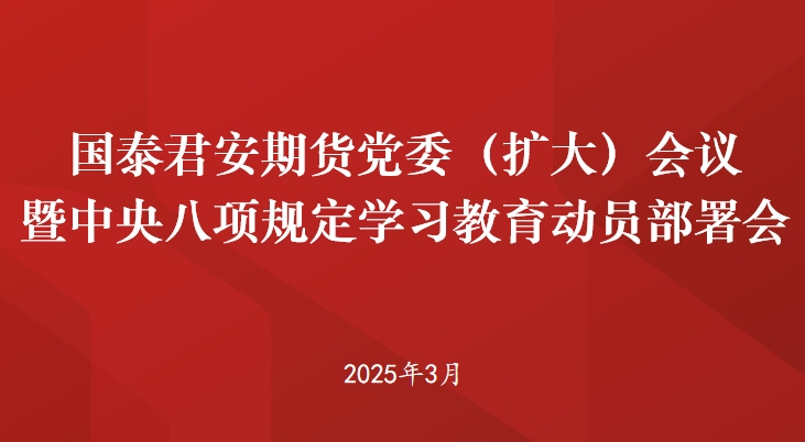 3月25日上午,国泰君安期货召开党委(扩大)会议,传达学习中央、市委关于开展深入贯彻中央八项规定精神学习教育的部署要求,研究审定国泰君安期货有限公司深入贯彻中央八项规定精神学习教育实施方案,部署启动学习教育工作。公司党委副书记、总经理张烨烨主持会议并讲话。