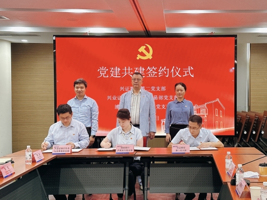 7月19日,兴证期货第二党支部携手兴业证券衍生品与交易部党支部以及浦发银行卢湾支行党支部,共同开展了一场主题为“联学联建强党纪 互学互鉴促发展”的党日共建活动。在专业讲解员的带领下,党员同志们参观了中共一大纪念馆,领略了“伟大飞跃——马克思主义中国化时代化文物史料专题展”的独特魅力。参观结束后,全体党员齐聚淮海中路街道的党群服务点——浦发银行卢湾支行会议中心,共同见证了三个支部党建共建签约仪式的举行,并围绕党风党纪主题以及金融业务合作点,展开了深入且富有成效的交流学习。