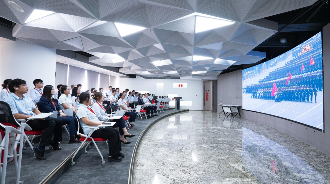 观看直播过程中,多功能厅内气氛庄重而热烈。当受阅方队迈着整齐划一的步伐通过检阅台,当先进装备列阵展现大国重器的风采,当嘹亮的军歌与欢呼声响彻屏幕内外,在场员工无不心潮澎湃、热泪盈眶。大家深刻认识到,今日国家的繁荣强盛,并非一蹴而就,而是无数先辈以“不怕牺牲、勇于奉献” 的革命精神攻坚克难的成果,是一代又一代人接力奋斗、砥砺前行的结晶。这种 “为了目标矢志不渝、面对挑战挺身而出” 的精神内核,与三立期货始终坚守的 担当、奋斗、共赢的企业文化高度契合,为全体员工注入了强烈的精神感召。