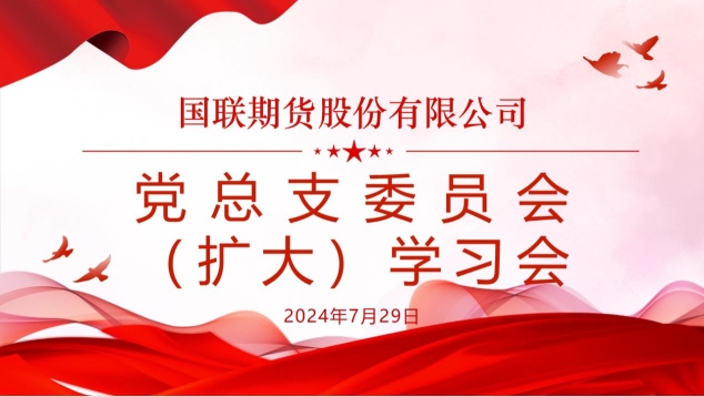 7月29日,国联期货召开党总支委员会(扩大)会议,传达学习党的二十届三中全会精神,国联集团党委委员、副总裁,国联期货党总支书记金佳同志主持会议。公司党总支副书记、董事长秦顺达同志,公司党总支委员、总经理徐炜中同志,公司党总支委员、监事会主席陈康同志、公司领导谢志超、谷爱平出席会议,并结合工作实际作研讨发言。