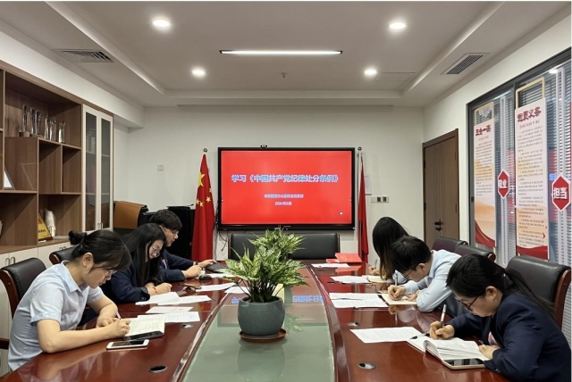 清算交割中心联合党支部结合支部实际制定支部学习计划,督促全体党员按计划完成学习任务,以支部书记上党课的形式,针对条例中新增和修改部分,结合典型案例加深支部党员对《条例》的理解和认识;召开专题学习会集中学习、研讨心得,动员支部党员参加专题网络培训班,分享线上党纪学习教育主题内容。