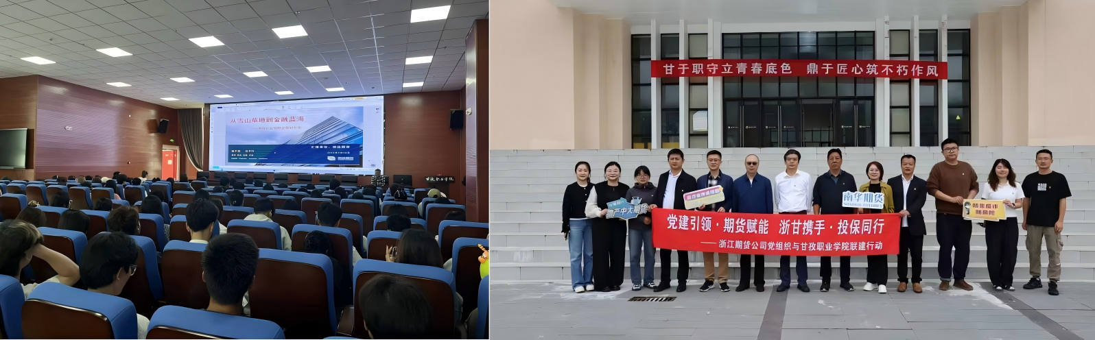 与此同时,在浙江金融职业学院,信达期货研究员开展了主题为《期货与未来》的讲座,讲座内容则更侧重于将行业情况介绍与职业发展规划相结合。讲师结合金融专业学生的未来职业路径,强调了合规展业、识别风险的重要性,为同学们未来开启的金融职业生涯上了至关重要的一课。