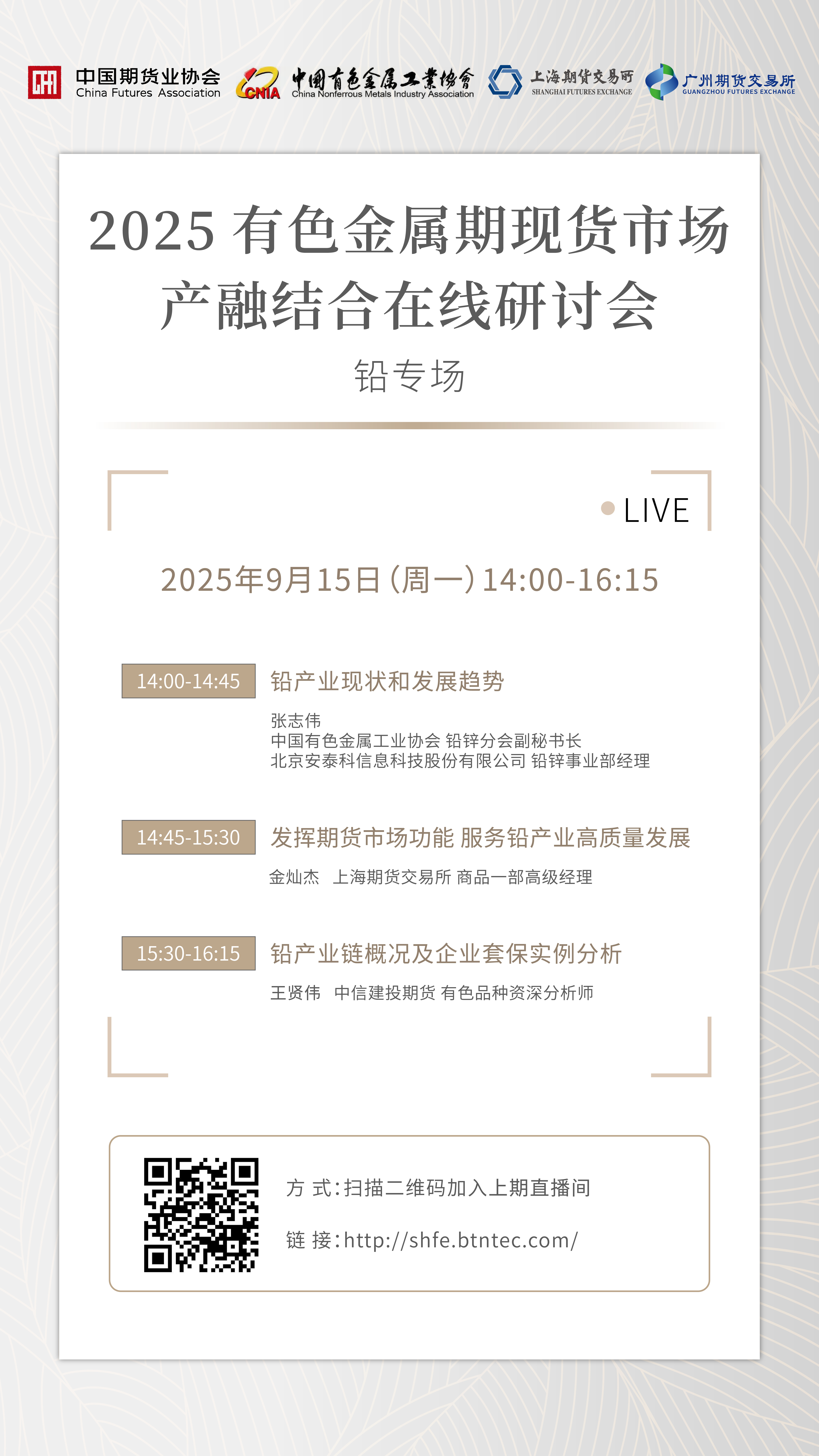 关于举办“2025有色金属期现货市场产融结合在线研讨会--铅专场”的通知