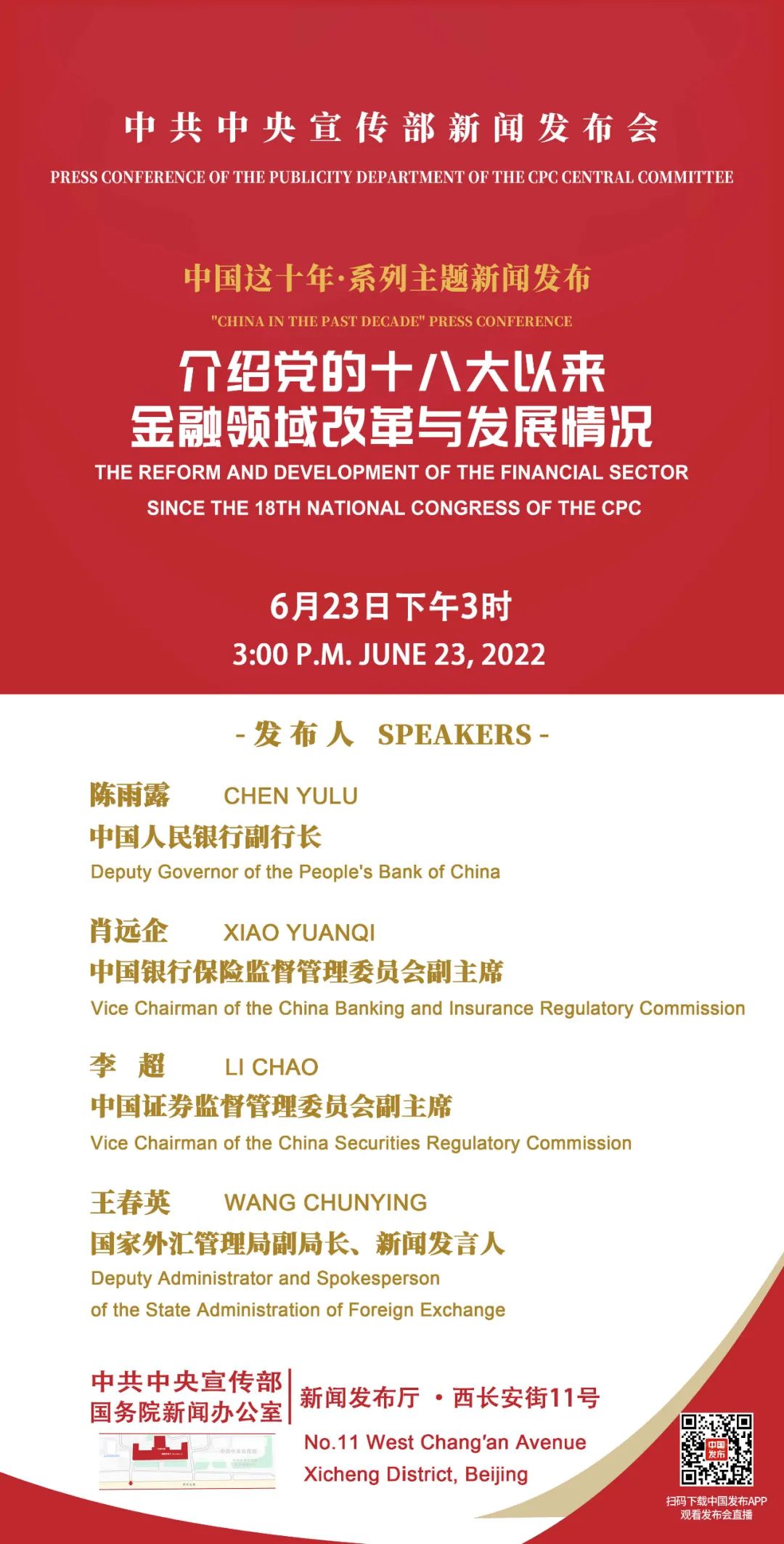 中共中央宣传部将举行介绍党的十八大以来金融领域改革与发展情况发布会