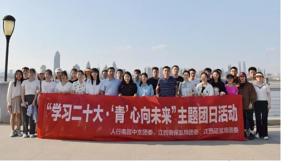 江西证监局团委联合人民银行南昌中心支行团委、江西银保监局团委开展“学习二十大,‘青’心向未来”主题团日活动,来自三家单位的30余名青年干部参加。活动中,青年干部学习党的二十大报告金句,重温习近平总书记对青年的寄语,结合党的二十大精神畅谈学习心得体会,深化了金融青年干部对党的二十大精神的认识,为三家单位青年干部提供了交流平台,增进了友谊和联系,为服务江西经济高质量跨越式发展汇聚了金融青年力量。