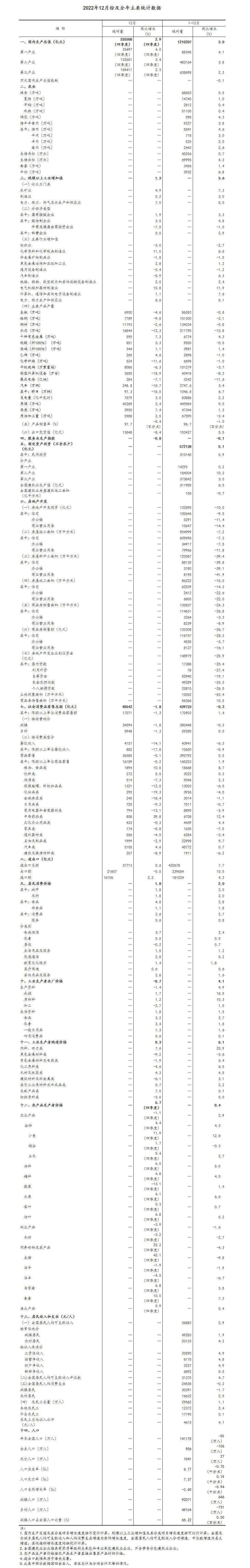 (1)国内生产总值及其分类项目增长速度按不变价计算,规模以上工业增加值及其分类项目增长速度按可比价计算,均为实际增长速度;其他指标除特殊说明外,按现价计算,为名义增长速度。